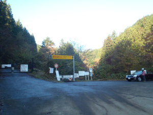 やがて堰堤を越えると、 林道が見えてくる。 ここまでくれば、もう安心だ。(14:00) |