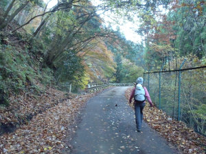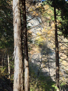 倉沢沿いの経路をたどる。 登山道から離れ、林道に向かう。 |