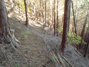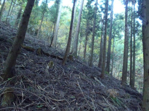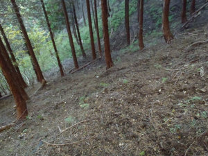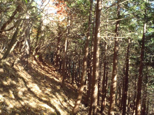 登り始めは、いつもの植林地帯。 踏み跡は特にない。 |