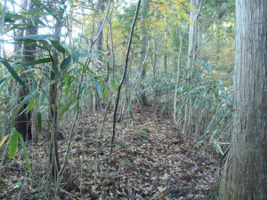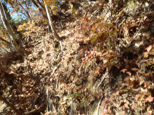 ここには、なぜか踏み跡がある。 けもの道かもしれない。 |
