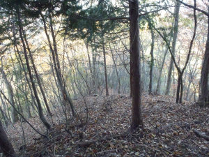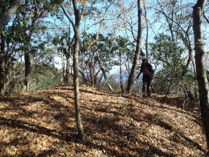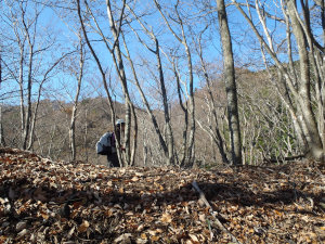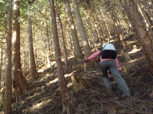 尾根に出るまでは、 少し急な斜面を登る。 |