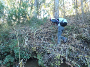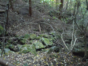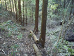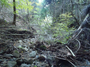 この経路はとても荒れている。 倒木や枯れ枝が散乱して、 暗く湿っている。 アンヌ隊員いわく、バッチい沢。