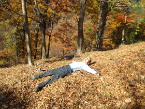 落ち葉の上に寝っ転がる。 はぁ、気持ちがええのぉ。 丹沢を一人占めした気分だ。 |