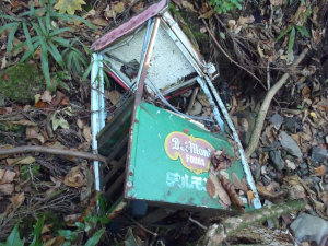 この道が廃道になる前、 小学生が遠足で歩いたときの ものだろうか。 |