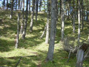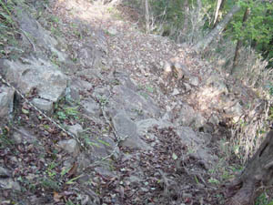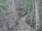 周囲は高い木に覆われているので、谷底が見えない。 沢の音か、それとも風なのか、とても気になる。 | |