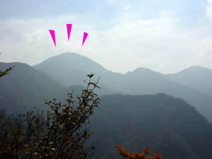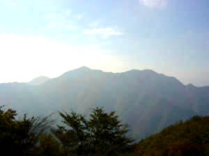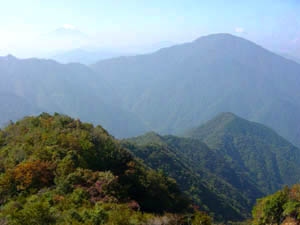 蛭ヶ岳が見える。 このあたりに来ると、沢の音が聞こえてくる。 そろそろ頂上近いのに沢の音?なぜ? もしかして風の音かな? | |