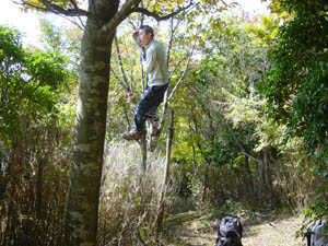 よし、木登り大作戦だ。 音の正体を確かめるぞ。 (結局、わからないかった。まぁ沢の音だろう。) | |