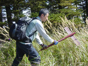 おや? ベンチの裏手にうっすらと道が伸びているぞ。 もしかして、マイナールートかな。 | |