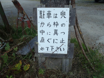奥からまっすぐ止めてほしい駐車場は ほぼ満車(平日なのに・・・)。 |