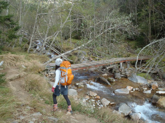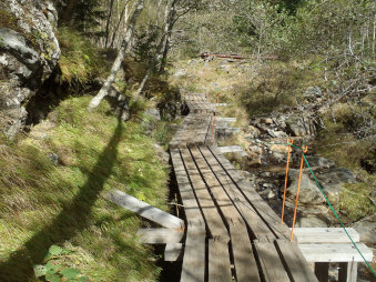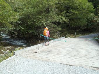 北沢沿いの登山道を進むとすぐに、 No.1ブリッジがある。 この登山道には、合計13ブリッジがある。 |