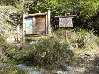美濃戸山荘のすぐ先に、 南沢と北沢の分岐がある。 今回は、北沢の方へ進む。 |