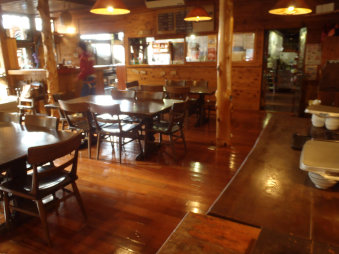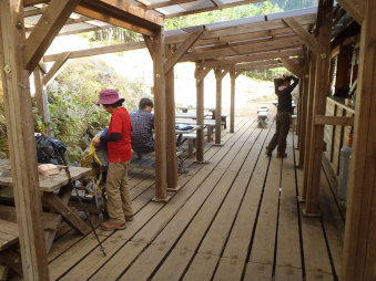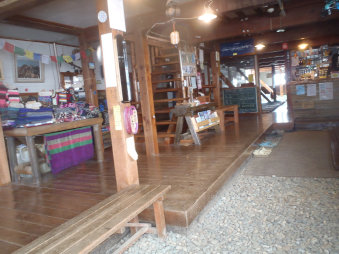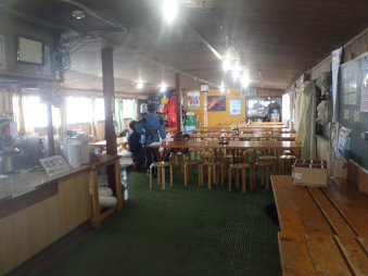 入り口付近の休憩所。 ここは自由に休憩していい。 登山者がたくさん休んでいる。 |