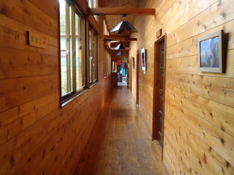 増築を繰り返しているためか、 廊下が長い。ここもとてもきれいだ。 |