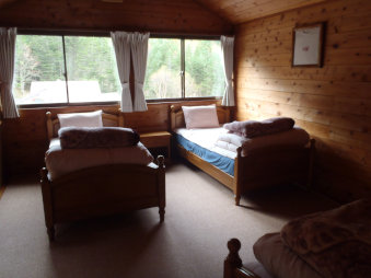 ちょっと個室を覗いてみると、 ベッドがある。ゆっくり寝られそうだ。 |