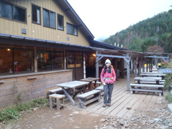 美濃戸山荘に到着。 美濃戸山荘に宿泊する場合、 ここまで車で入れるらしい。