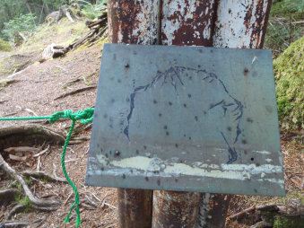 これはおそらく、詳細を書いてある 看板が流されてしまい、この看板だけが 残されているためと思われる。