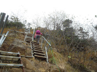 そして、これまた急な階段。 ここも階段がなければ、 滑落の名所になるところだ。 |