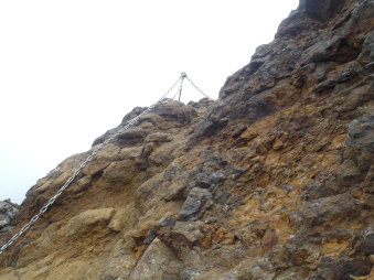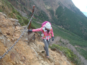 クサリに頼って登るだいご味を 味わって登りたい。 |