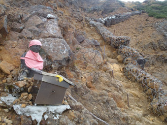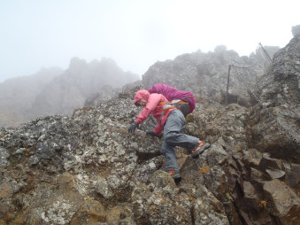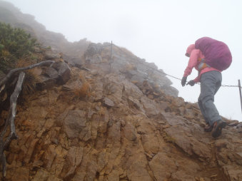 177mは、たいしたことがないかもしれない。 しかし、雨風と霧、濡れた岩場、 そし急峻な坂。悪い条件はすべて整って いると言っていい。我が隊にとっては かなりハードルが高い。