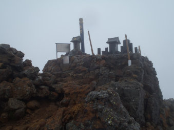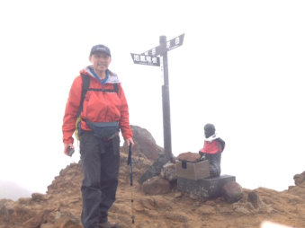 こうして、山頂に到着。 いつもなら山頂でおにぎりタイムなのだが、 アンヌ節「おなか減ったね」が出てこない。 (この状況じゃ、当然か) |