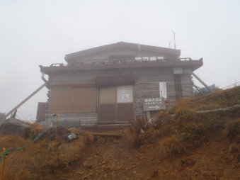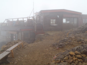 赤岳頂上荘に到着。 とりあえず、ここまで無事到着。 周囲には誰もいない。 |