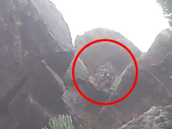 山頂の岩陰で休憩を取っていると 小さな鳥が歩いている。 (帰宅して調べたらイワヒバリだった) 岩の合間の餌を突っついている。 |
