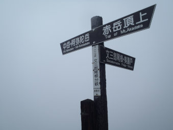 それでは、お決まりの、 すこいぞマイナールート探検隊! ついに来たぜ赤岳。 我が隊の最高峰 2899mだ。 |
