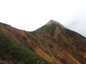 硫黄岳と大同心が目線と同じ位置まで 見えるようになってくる。 |