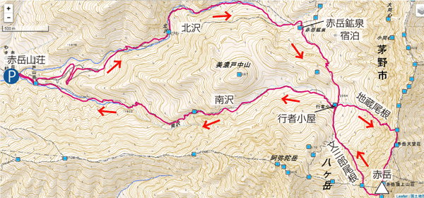 行者小屋で聞こえてきた話では、 ここ南沢より私たちが昨日歩いた 北沢の方がオススメらしい。 (ただし北沢の方が大回り) |